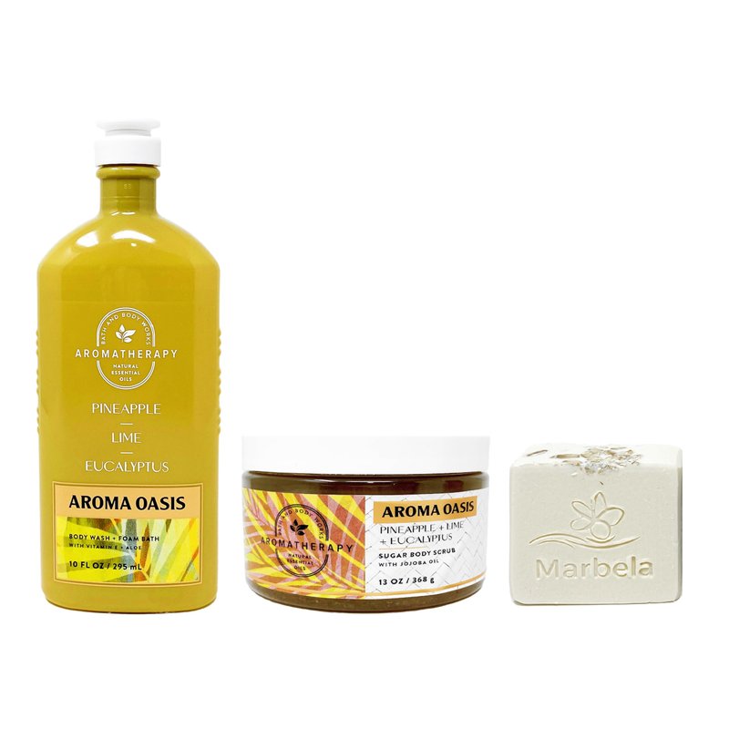 - Bath & Body Works Aromatherapy Pineapple, Lime, Eucalyptus With a Marbela Natural Oats Soap. (Marbela Soap May Vary)
