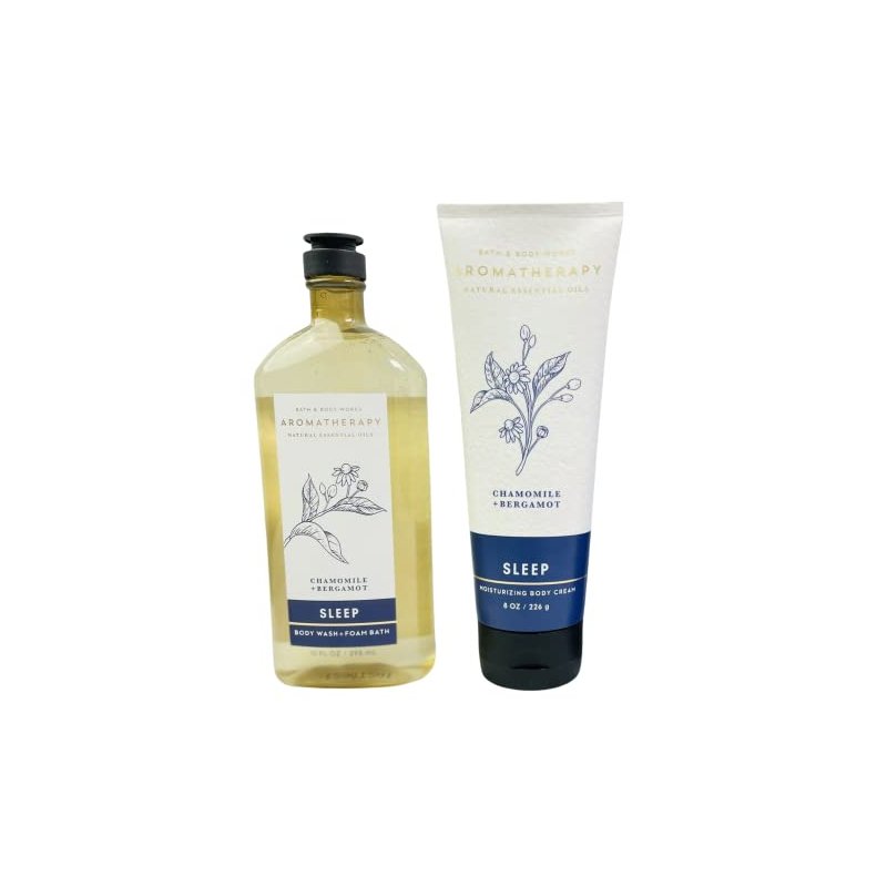 Bath & Body Works - Aromatherapy - SLEEP – Chamomile + Bergamot – Body Wash & Foam Bath & Body Cream - 2 pc Full Size- Bundle 14.5 ounce total