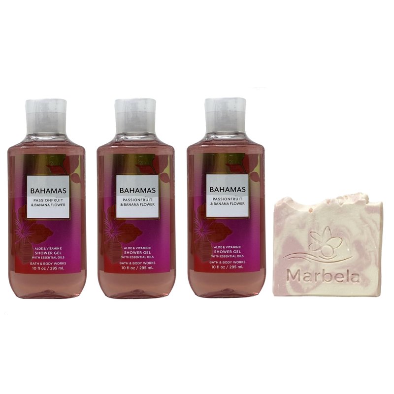 - Bath & Body Works Bahamas Passionfruit & Banana Flower - 3 Pack - Shower Gel with a Himalayan Salts Springs Sample Bar Soap.