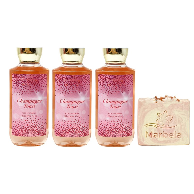 - Bath & Body Works Champagne Toast Shower Gel Value Pack with a Marbela Himalayan Salts Springs Bar Soap.