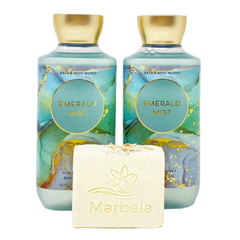 - Bath & Body Works Emerald Mist 2 Pack Aloe + Vitamin E Shower Gel Gift Set with a Natural Oats Bar Soap - Full Size