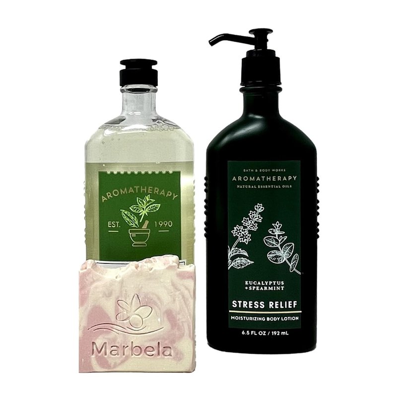 - Bath & Body Works Eucalyptus Spearmint Duo Set with a Himalayan Salts Springs Sample Soap. (Marbela Sample Soap May Vary).