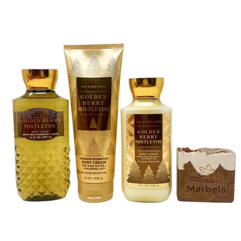 - Bath & Body Works Golden Berry Mistletoe With a Marbela Yamma Jamma Bar Soap. (Marbela Soap May Vary)