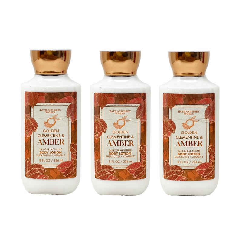 Bath & Body Works Golden Clementine & Amber 3 Pack Body Lotion Bundle - 8 fl oz / 236 mL each