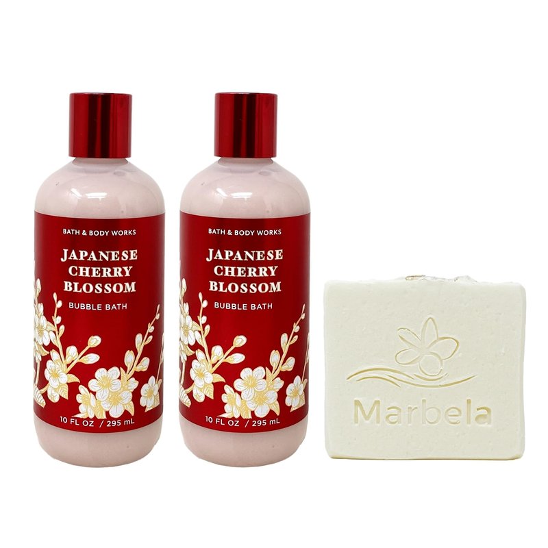 - Bath & Body Works Japanese Cherry Blossom Bubble Bath Value Pack with a Natural Oats Soap.