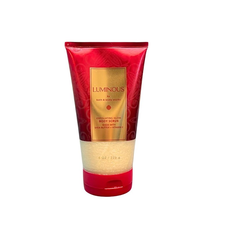 - Bath & Body Works Luminous Exfoliating Glow Body Scrub - leaves skin feeling smooth and soft and looking healthy and radiant. Infused with shea butter and vitamin E.