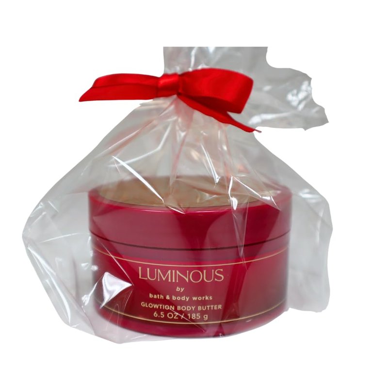 Delight in the luxurious Bath & Body Works Luminous Glowtion Body Butter Gift Pack for Women, a perfect choice for skin that loves extra care. Enriched with the goodness of shea butter, coconut oil, and cocoa butter, this body butter delivers 24 hours of rich moisture, leaving your skin softly shimmering. Scented with ruby currant, gilded iris, and praline amber, it makes you feel indulgent and sparkling with every use. Beautifully comes with a plastic bag adorned with a red bow, this gift set is ideal for any occasion, offering a touch of elegance. Add this body butter to your daily routine for a natural, glowing look.