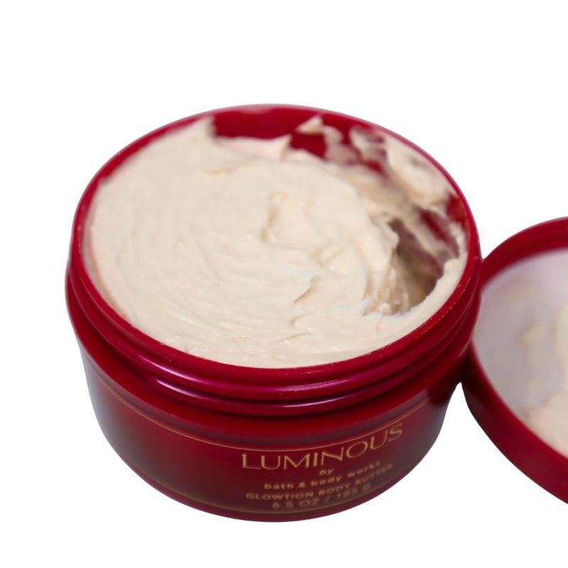 - Bath & Body Works Luminous Glowtion Body Butter - provides 24 hours of nourishing moisture and gives skin a brilliant shimmer.