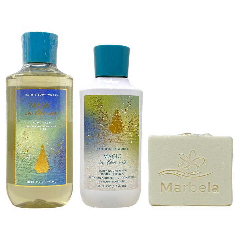 - Bath & Body Works Magic In The Air Duo Gift Set with a 4 oz Marbela Natural Oats Bar Soap. (Soap May Vary).
