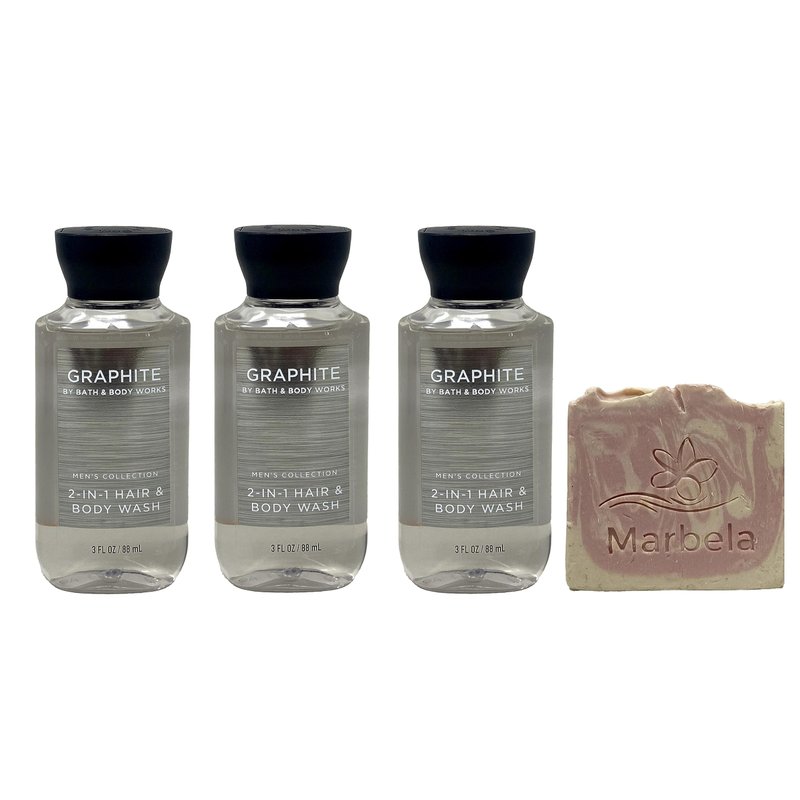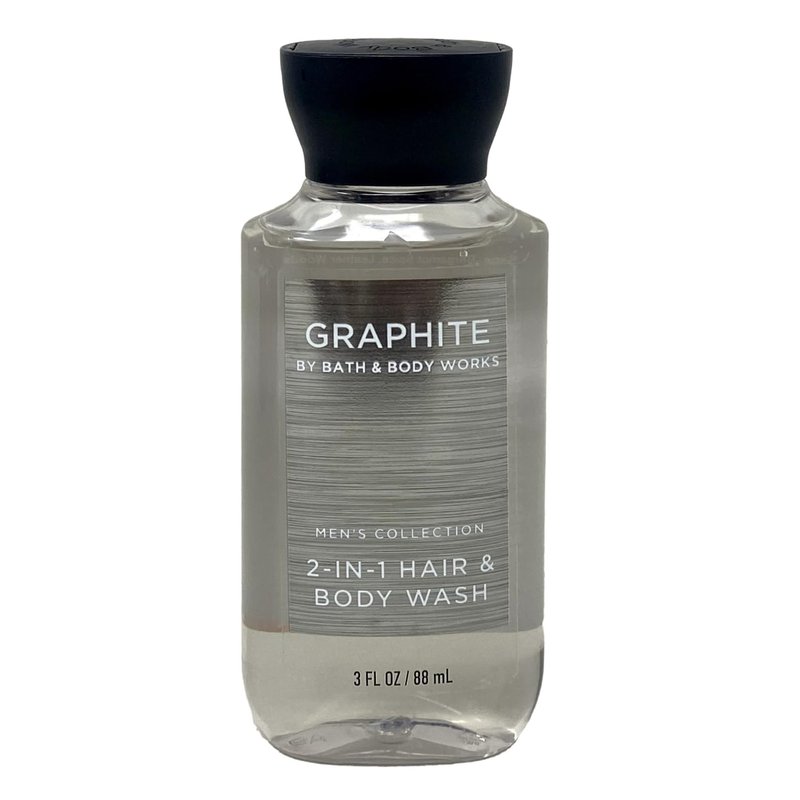 Bath & Body Works Men's Collection Graphite 2-in-1 Hair, Face & Body Wash 3 Piece Travel Size with a Himalayan Salts Springs Sample Soap.