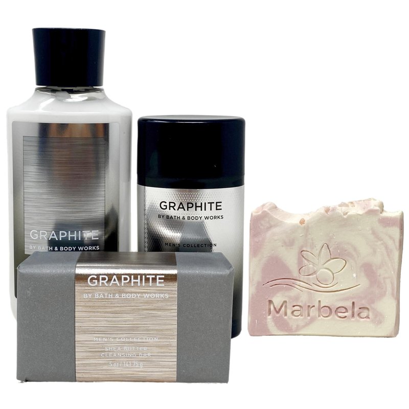 - Bath & Body Works Men's Collection Graphite with a Marbela Himalayan Salts Springs Sample Soap.(Marbela Sample Soap May Vary)