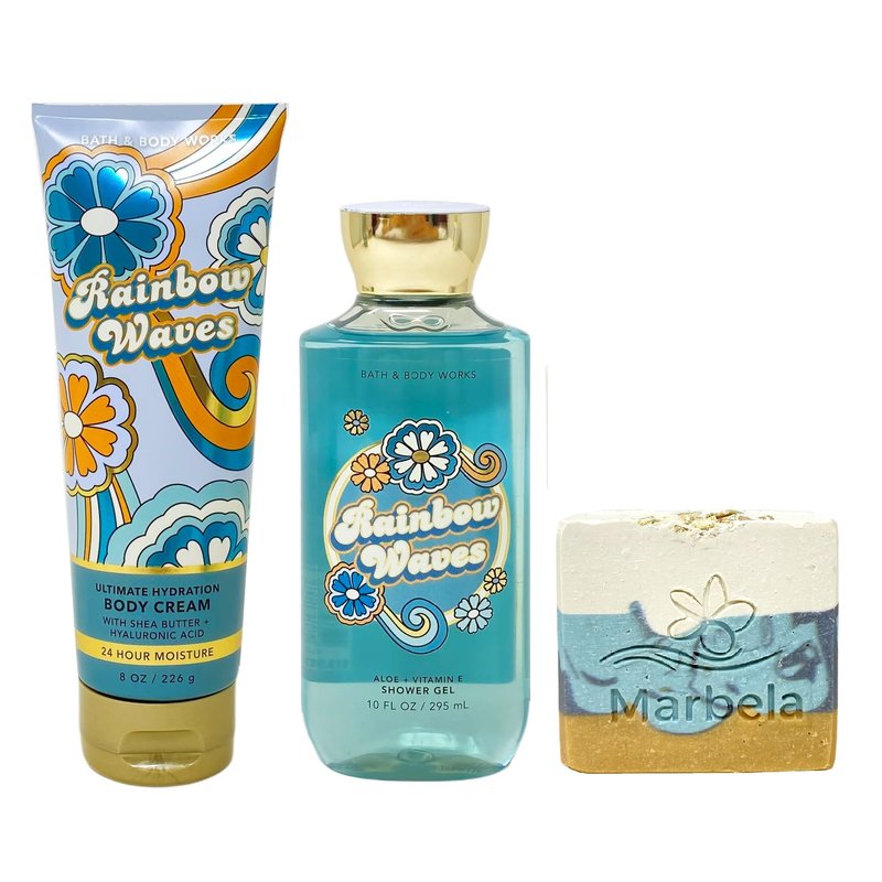 - Bath & Body Works Rainbow Waves 2 Piece Bundle with a 4 oz Marbela Sea Breeze Bar Soap. (Soap May Vary).