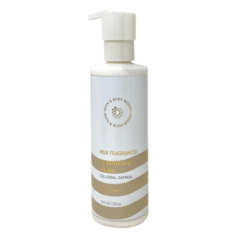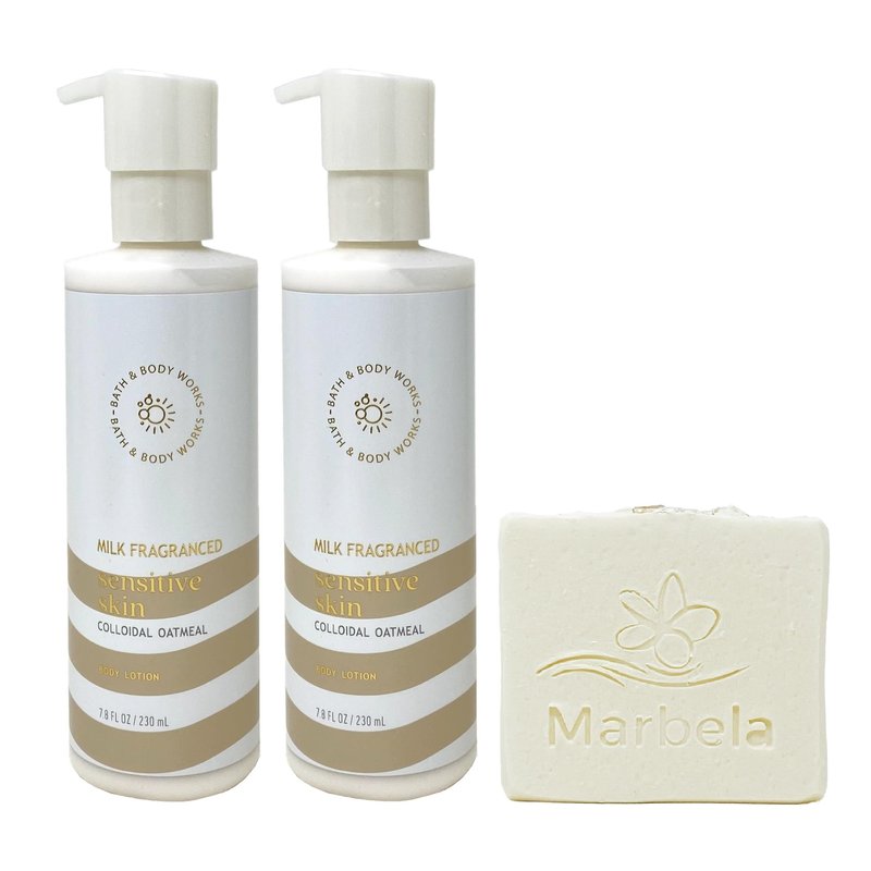 - Bath & Body Works Sensitive Skin Milk Fragranced Body Lotion Bundle with a Marbela Natural Oats Soap.