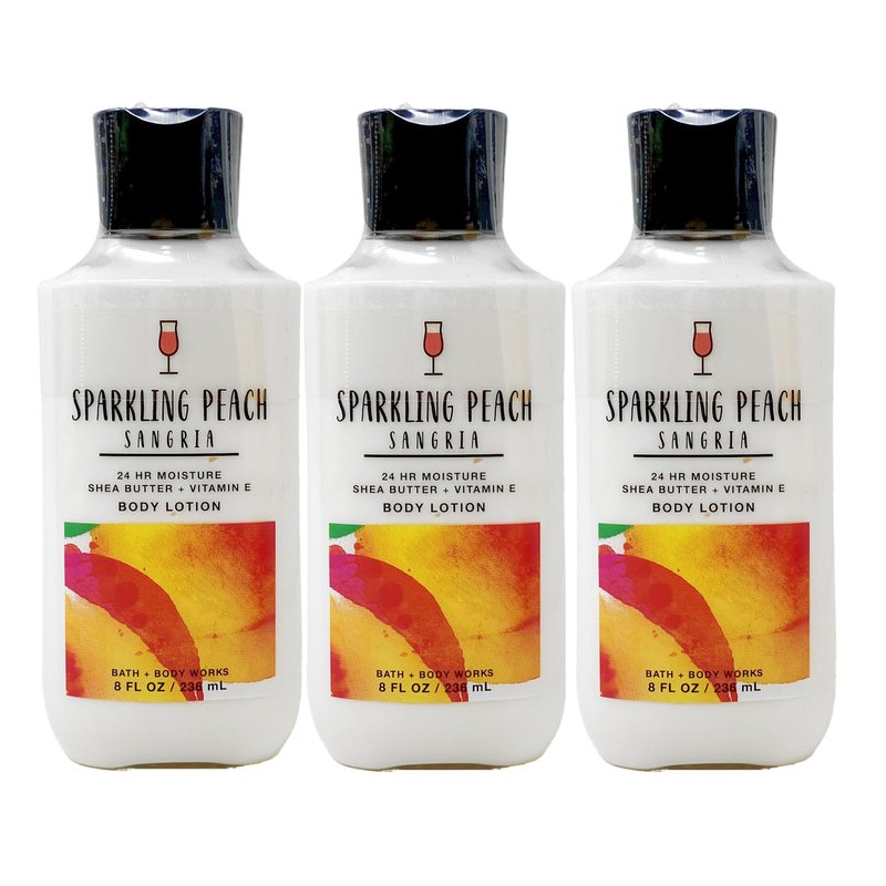 Bath & Body Works Sparkling Peach Sangria - 3 pack - 24 hr Moisture Shea Butter + Vitamin E Body Lotion