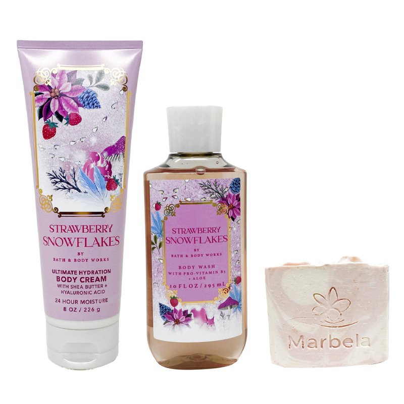 - Bath & Body Works Strawberry Snowflakes - Duo Gift Set - Body Cream and Body Wash With a Himalayan Salts Springs Soap., pink