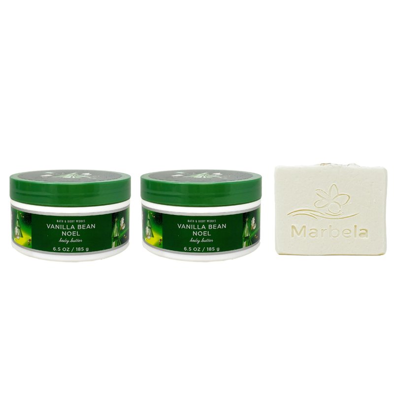 - Bath & Body Works Vanillla Bean Noel Body Butter Set with a 4 oz Marbela Natural Oats Bar Soap. (Soap May Vary).