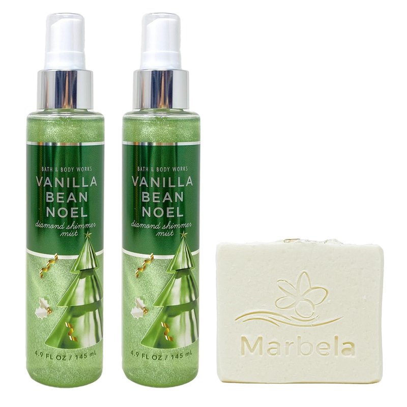 - Bath & Body Works Vanilla Bean Noel Diamond Shimmer Mist Bundle with a 4 oz Marbela Natural Oats Bar Soap. (Soap May Vary).