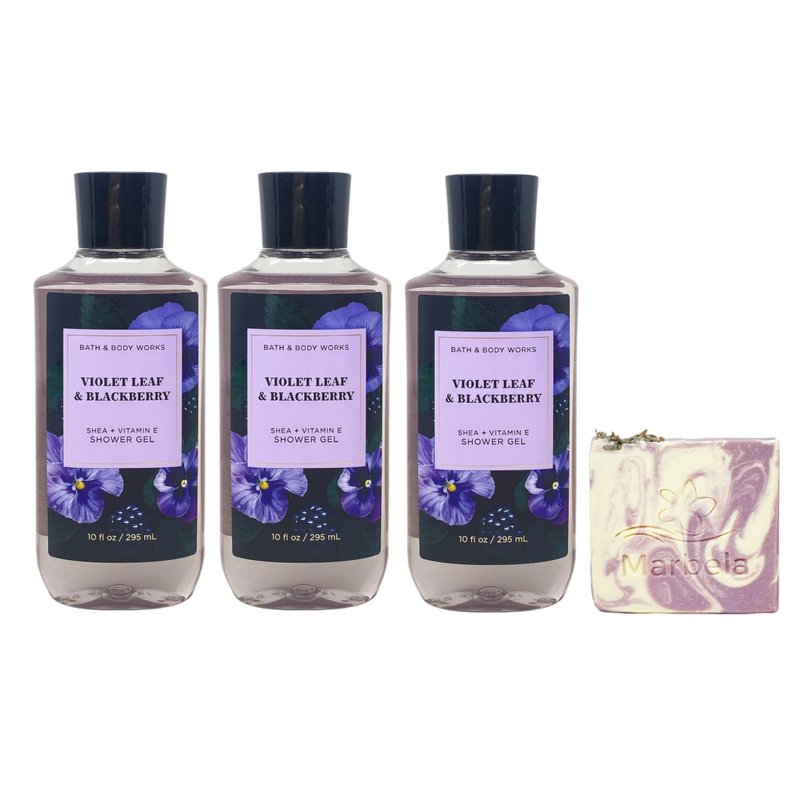 • Bath & Body Works Violet Leaf & Blackberry Shower Gel Value Pack with a Marbela Lavender Dream Bar Soap