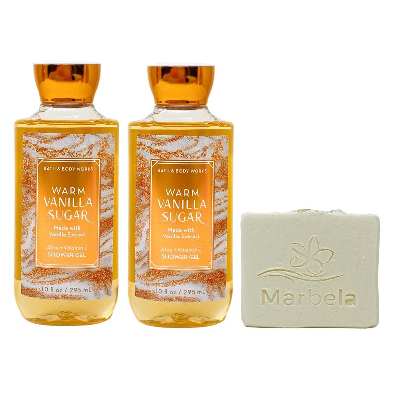 - Bath & Body Works Warm Vanilla Sugar Body Wash Gift Set with a 4 oz Marbela Natural Oats Bar Soap. (Soap May Vary).