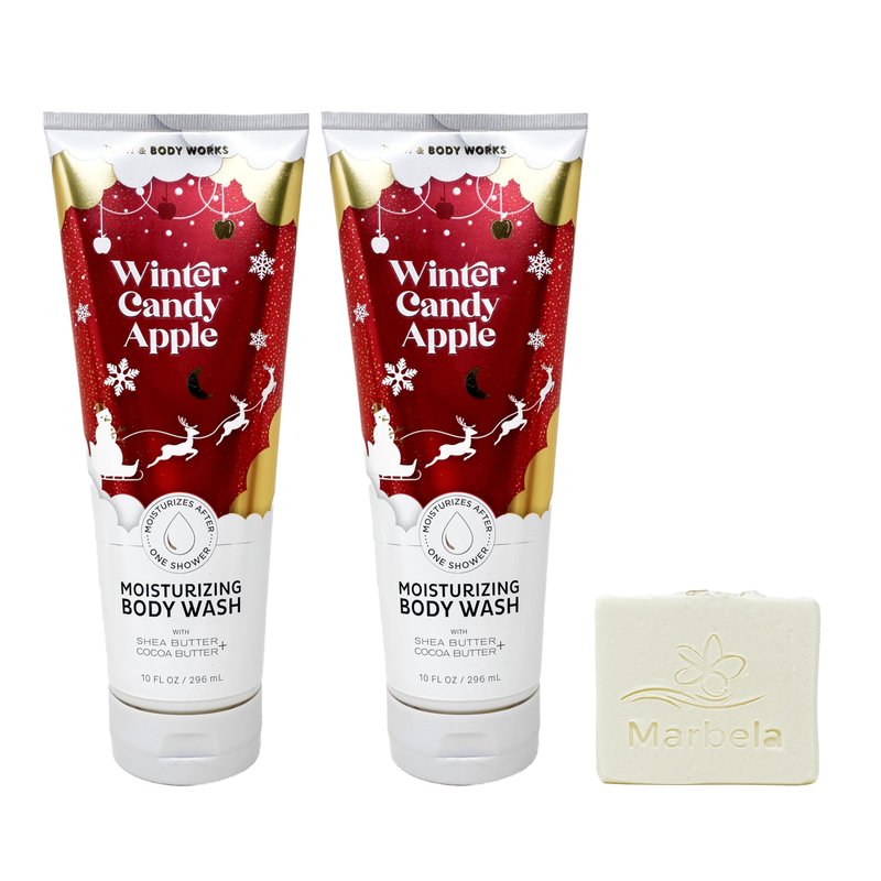 Bath & Body Works Winter Candy Apple - 2 Pack Of Moisturizing Body Wash with a Marbela Natural Oats Sample Soap. (Marbela Sample Soap May Vary).