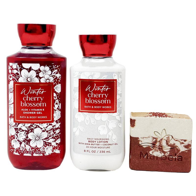 - Bath & Body Works Winter Cherry Blossom with a Marbela Cherry On Top Soap. (Marbela Soap May Vary)