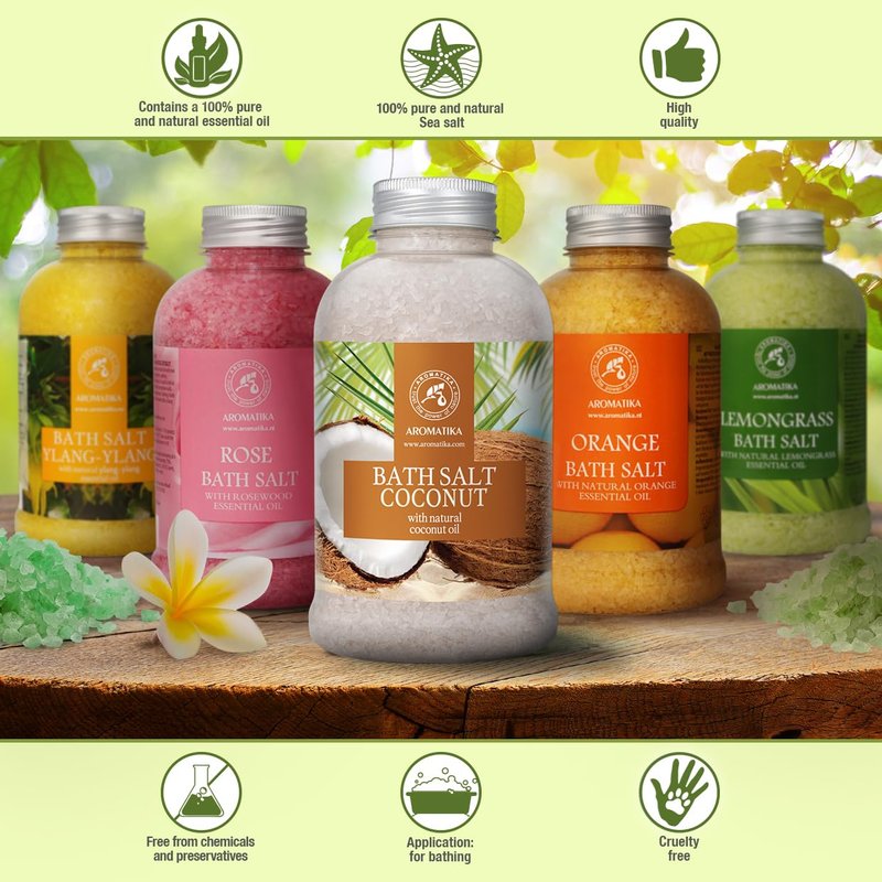- The use of pure Coconut oil in sea salt ensures highly effective aromatherapy. The milky scent inspires relaxation and promotes rest in all senses.