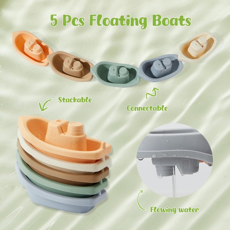 Bath Toys Floating Boats with Silicone Bath Toys, 9 PCS Mold Free Baby Bath Toys for Infants 6-12-18 Months Bathtub Water Table Toys for Toddlers 1-3, Water Pool Toys for 1 2 3 4 Boys Girls Kids