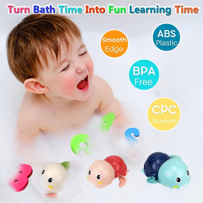- 【Enjoy Fun Bath Time】: Only wind up clockwise, without battery, see them flapping their flippers and propelling themselves through the water, making your little ones giggle with glee. Let's Catch Them. Your kids can swoop up the swimming turtle with the fishing net.