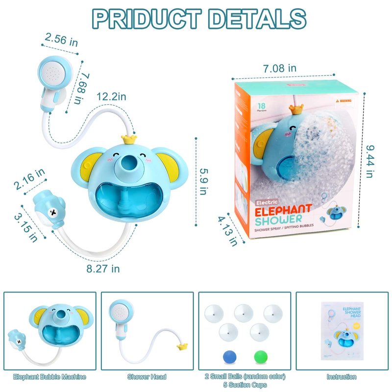 - 【3-in-1 Bath Toys Set with Bubble & Music】: The bubble maker for bathtub with super rich bubbles. Cute elephant theme can attract kid's attention immediately, the color is bright, reusable, there are obvious liquid scale lines. They are designed to create an enjoyable and entertaining experience for your baby during bath time. Their presence is will to bring laughter and joy to your little one's bathing routine! Note: the colors of the 2 balls are random