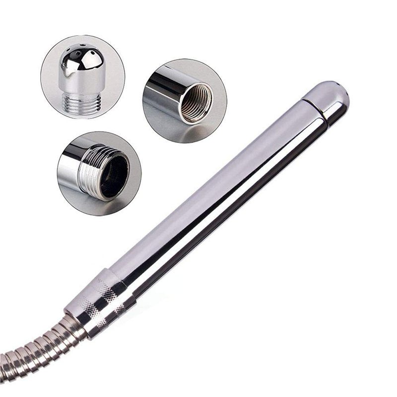 Material: High-quality Aluminum Weight: 4 oz Come with 3 heads, these heads can be interchangeable, enjoying different insertion and convenient to clean Size: Shower tube inner diameter: 0.78 inch Shower tube length: 5.12 inch(130 mm) 3 Heads' diameter: 0.98/0.78/1.06 inch 3 Heads' height: 1.26/0.79/0.79 inch 150 mm (5.9 inch) insertable length Using Introduction: This is a very neat enema system. Its douche/enema nozzle is outfitted for use as a shower attachment The Shower Enema Kit comes with Three nozzles.It also comes with a 5ft (1.5m) metal hose.Need to have a hose installed in your shower to attach the adaptors. One end of the hose screws into your shower, the other end is where you attach your choice of nozzle.Where the Shower Enema Kit connects with your shower it has a valve that directs the water either through the nozzle and into you or to the shower head Features: 1. Streaming design: Fashion, comfortable handle, aluminum alley plating process, anti-rust 2. Easy operation: Only one hand to use, easy & convenience 3. Seven-hole design for water spraying: It can make a comfortable experience Please check the size description in the picture before buying to ensure that it will bring you a good experience after purchase. Your satisfaction is our greatest progress!