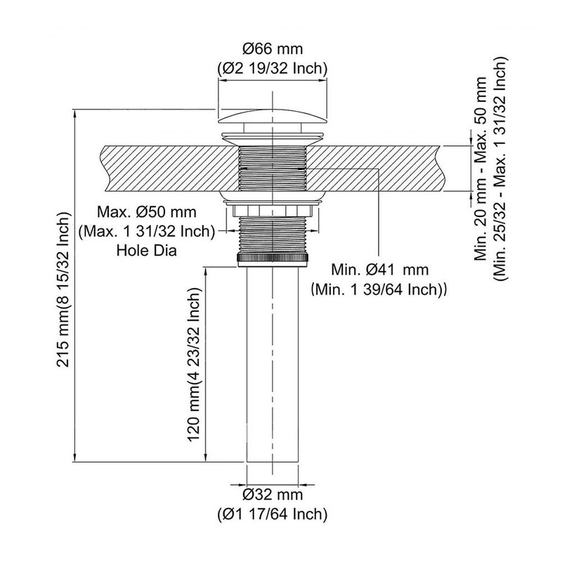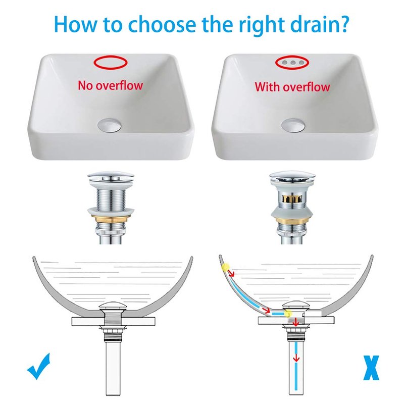 - STANDARD 1 3/4" DRAIN OPENING: Fits sink hole diameter 1.6-inch to 1.9-inch. MAX. sink thickness 1.97-inch. Ideal for any above-counter vessel sink without overflow.