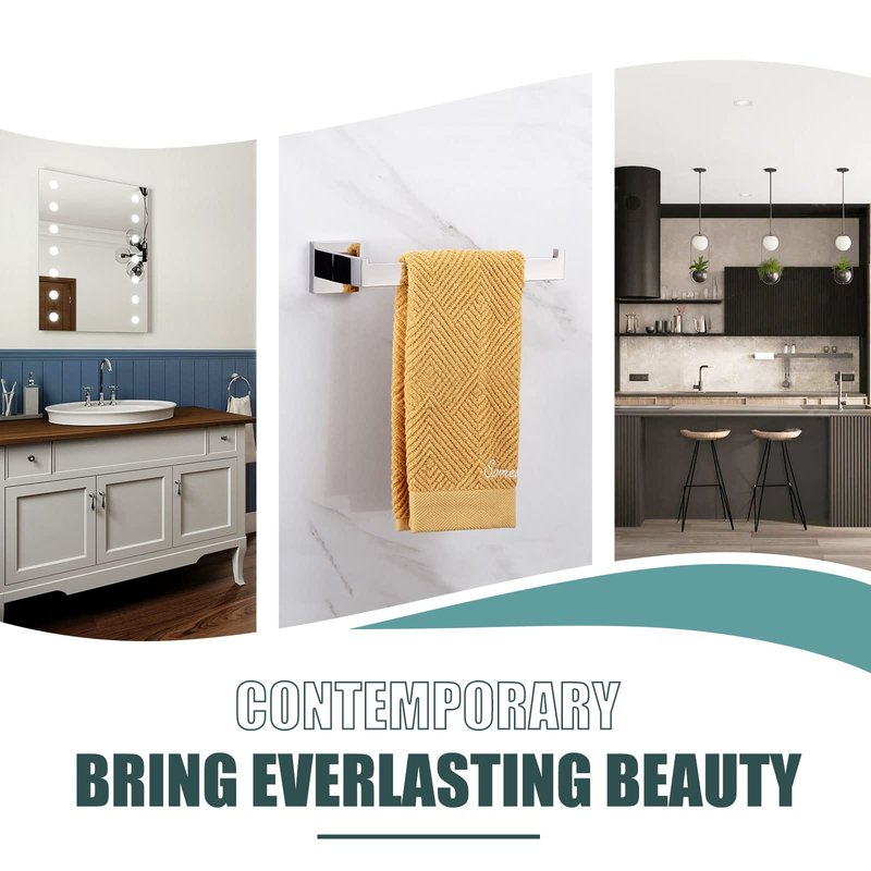 - SPACE EFFICIENT ALTERNATIVE: replace the traditional bulky towel holder with our modernistic towel bar, simple lines reflect your aesthetics of minimalist living, adds a finishing touch to your remodeled bathroom