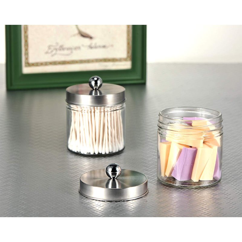 - ✅DECORATIVE AND FUNCTIONAL: The glass apothecary jars combine beauty with organization. A rounded base provides plenty of room for storing cotton swabs, qtips, cotton balls, cotton rounds,flossers,hair accessories and is easily wiped clean with soap and water.It provides a decorative accent to your powder room, bathroom vanity, makeup table and keep everything clean and organized!