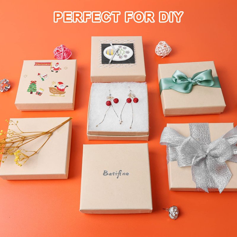 batifine Cardboard Jewelry Gift Boxes, 40 Pack 3.5x3.5x1 Inch, Bulk Cotton Filled Small Jewelry Boxes with Lids for Necklace Ring Bracelet Earring Display Box (Brown)
