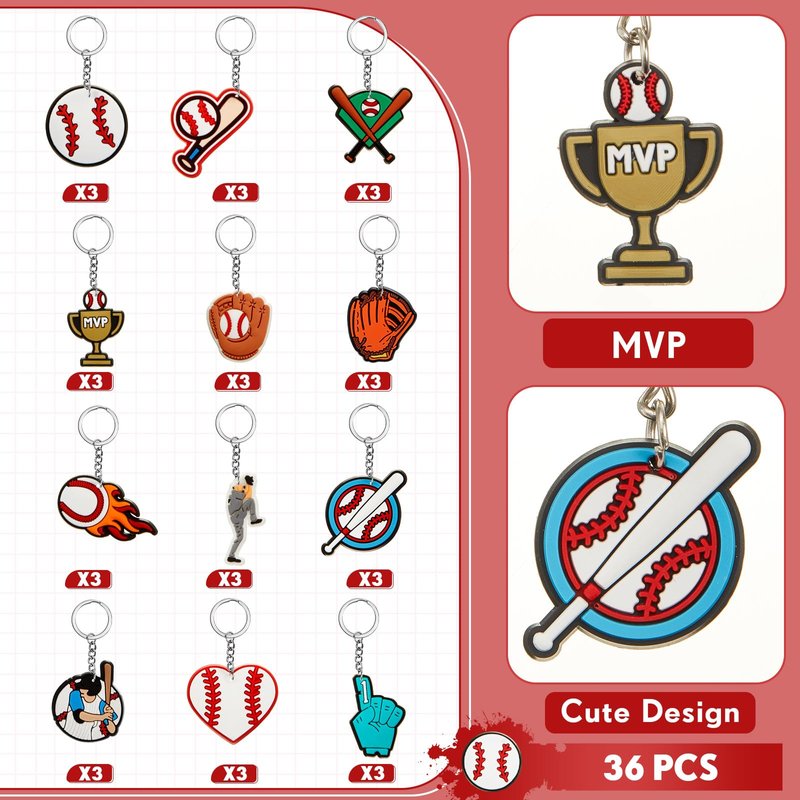 - Assorted Baseball Keychains: you will receive a total of 36 baseball key chains, with 12 different designs, and 3 pieces per style, with a sufficient quantity and diverse designs to satisfy your daily use and replacement, you can also share them with family and friends