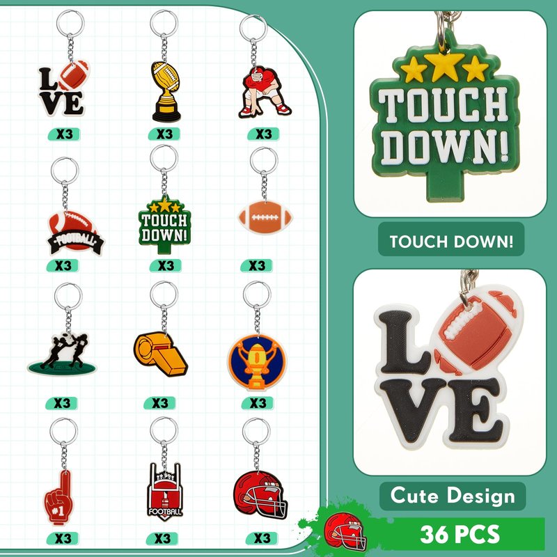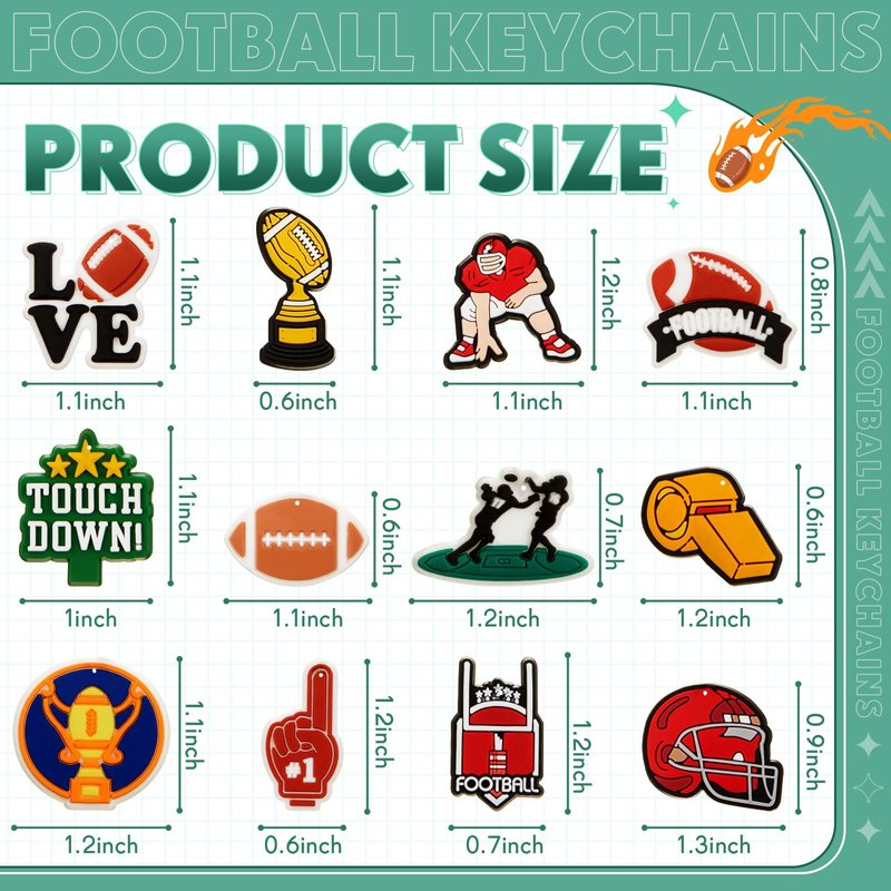 - Assorted Football Keychains: you will receive a total of 36 football key chains, with 12 different designs, and 3 pieces per style, with a sufficient quantity and diverse designs to satisfy your daily use and replacement, you can also share them with family and friends