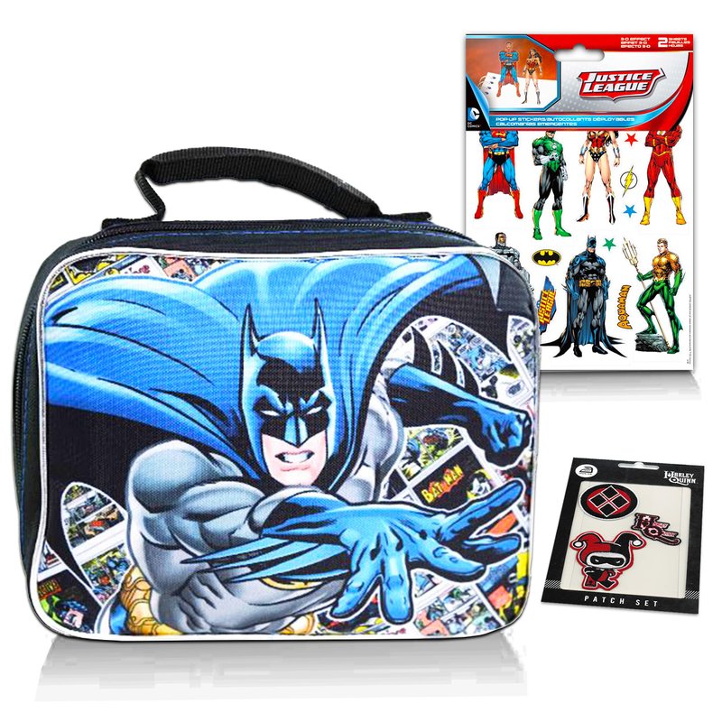 - Batman Lunch Box Travel Activity Set - Insulated Batman Lunch Bag with Justice League Stickers and Patches for Boys Girls Kids (Batman School Supplies Bundle).