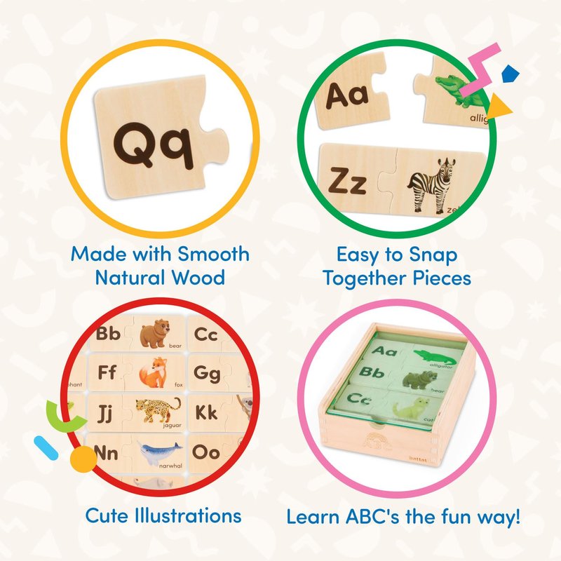Battat – One-Match Puzzle – Alphabets Wooden Puzzle for Toddlers – Wooden Toys – Educational Toys – 3 Years + – Self Correcting Puzzles with Storage Box ABC