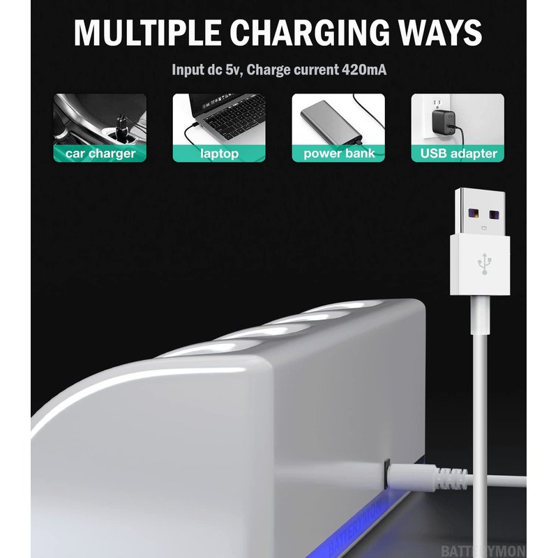 - The charging cable can connect to any USB power for charging.