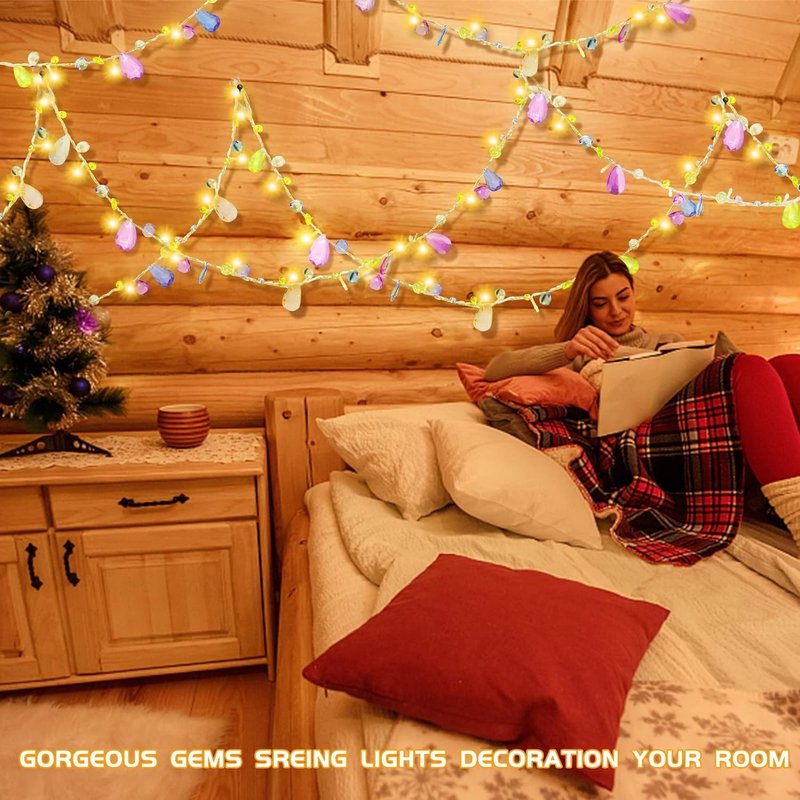 - Handy Remote & Timer: Acrylic gems jewels fairy lights battery operated with a remote control, lighting patterns, brightness and Timer can be easily set in hand. Once you set the timer, the battery powered light string will illuminate for 6 hours and automatically turn off for 18 hours, more energy efficient.