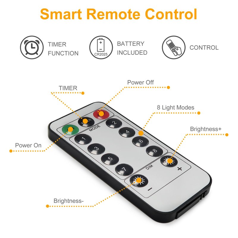 - 8 Modes LED Fairy String Lights: 9.8ft battery twinkle fairy lights with remote 8 lighting effects (combination, in wave, sequential, slo glo, chasing/flash, slow fade, twinkle/flash, and steady on.) You can choose different twinkling modes according to your environmental needs, adding unique colors to your ambient atmosphere.