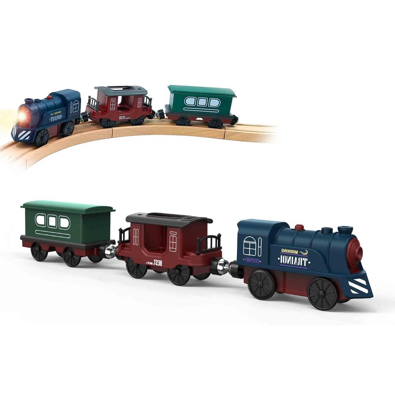 Battery Operated Train for Wooden Track, 3Pcs Train Toy Set for 3 4 5+Years Old Boy Girl Toddlers, Motorized Train Accessories Electric Train Compatible with Thomas & Friends, Brio and Chuggington