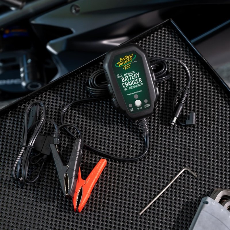 Battery Tender Junior 12V, 800mA Battery Charger and Maintainer for Lead Acid and Lithium Batteries - Switchable Battery Charger for Powersports - 022-0199-DL-WH