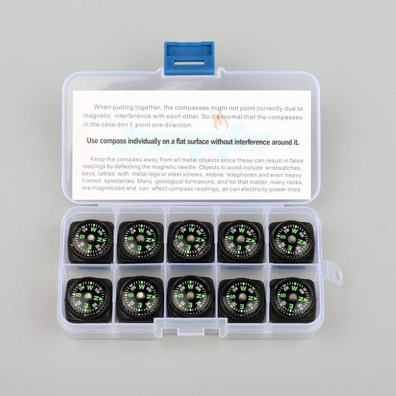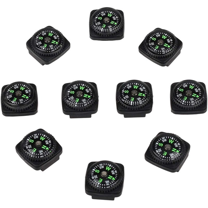 bayite Hard Shell Liquid Filled Button Compass Set for Survival Watch Band Paracord Bracelet Pack of 10