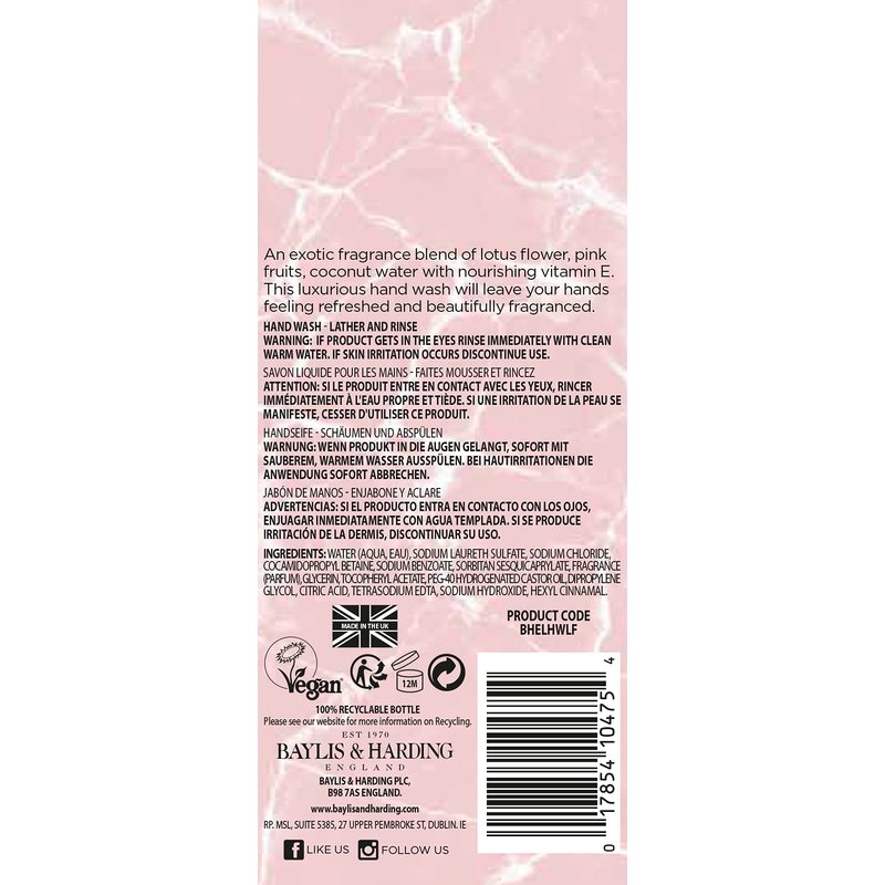 Baylis & Harding Liquid Hand Soap Wash with Dispenser, Elements, Pink Blossom & Lotus Flower, 16.9oz/500ml