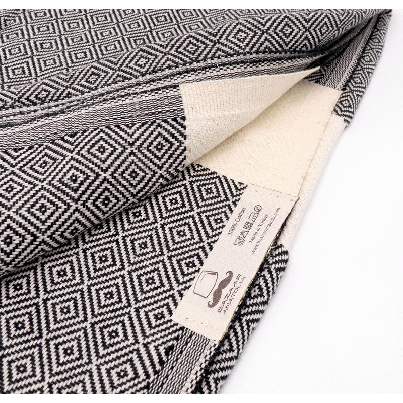 Diamond Turkish Bath Towels 100% Cotton black towels Size: 71x39" (size without tasels) Weight: 15 oz (420 grams) per towel. Turkish towels produced in manually operated looms in Turkey. Woven by craftsmen in hand looms, has been used in Anatolia for thousands of years. Sustainable and environmentally friendly product in every respect; ✔ Colorful towels OEKO-TEX certified, natural-dyed, pure 100% cotton yarns. No harmful substances or chemicals. ✔ Turkish towels reduce water and energy consumption with easy wash and quick dry. ✔ It is minimalist as it takes up little space, decorative and versatile. ✔ Label on the towel designed as hanging loop and made of 100% cotton also. ✔ The product tag is recyclable craft cardboard. Quick dry beach towel absorbs water quite fast and dries very quick without mildewy smell. Dries even when the sun is behind the cloud. Luxury Boho Bath Towels become soft and absorbent after several washes. There are many ways to use Turkish Beach Towel. You can use the turkish towel as a scarf on the outside, as a shawl on the terminal, as a travel blanket on an airplane, as beach towels or beach blanket when you get off the plane and go to the beach. Turkish beach towels are the best beach accessories for vacation must haves Turkish towel is easy to carry, large and takes up less space. You can use turkish beach towel as turkish decor, boho bath towels, towels for bathroom, bath sheets, bath pool towels, extra large bath towels, swim towel, toallas de baño grandes, mens sarong, large beach towel, boho towels for the bathroom, black decorative towels for bathroom, gym towel, oversize beach towels, boho beach towel, quick dry towel, yoga blanket for restorative yoga, yoga mat towel, picnic blanket, woven blanket, towles, camping blanket, sand free beach towel, beach towels oversized clearance.