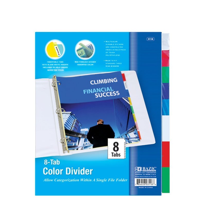 BAZIC 3-Ring Binder Dividers w/ 8-Insertable Color Tabs