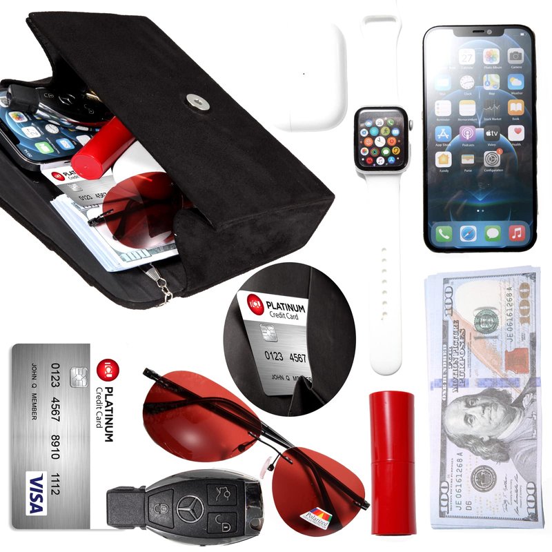 This clutch can hold everything you need in a special occaction ,like car keys, tissues,phone, cards,makeups,sunglass and so on .