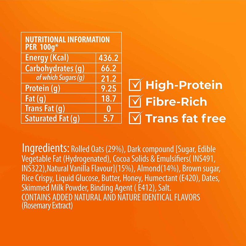 - Burst of Flavor: With a rich mix of dark choco, real almonds, roasted oats, dates and honey, our energy bars are a filling fix for all your cravings.