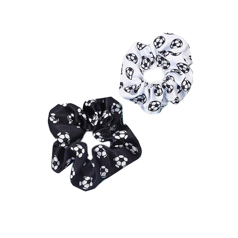BBTDIN Soccer Ball Print Hair Tie, Football Hair Scrunchies for Cheer Girls, 2 pcs/set Package: 1*Black 1*White